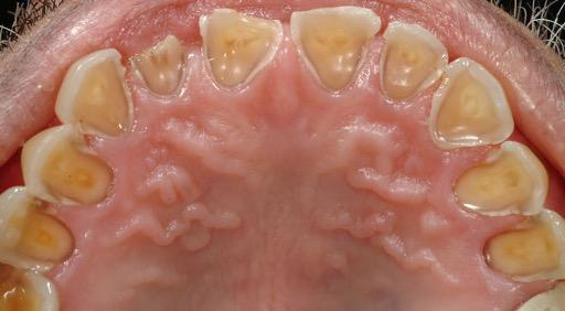 Dental erosion occurs due to sugars and acids in a person’s diet. When acidic foods and drinks are consumed, the acid causes the enamel of the teeth to become weaker and wear away. If the patient tends to grind their teeth, the wear is exacerbated and if it continues, the surfaces of the teeth become flat and sometimes even crater-like. If left untreated, the wear can cause so much damage that the tooth becomes sensitive and eventually the nerve of the tooth can become damaged.