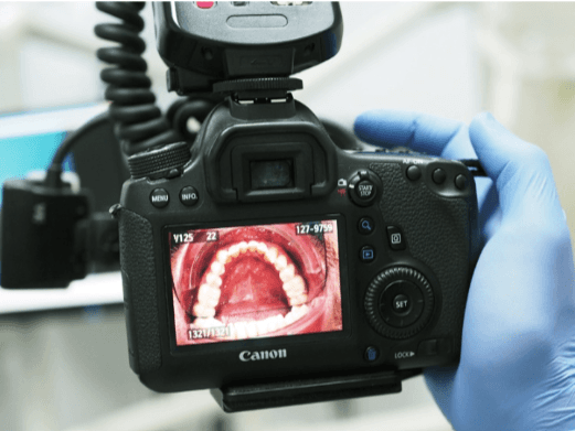 Digital macro photography uses special sensors to capture high-resolution images inside the mouth that can be immediately uploaded and displayed on the monitor.